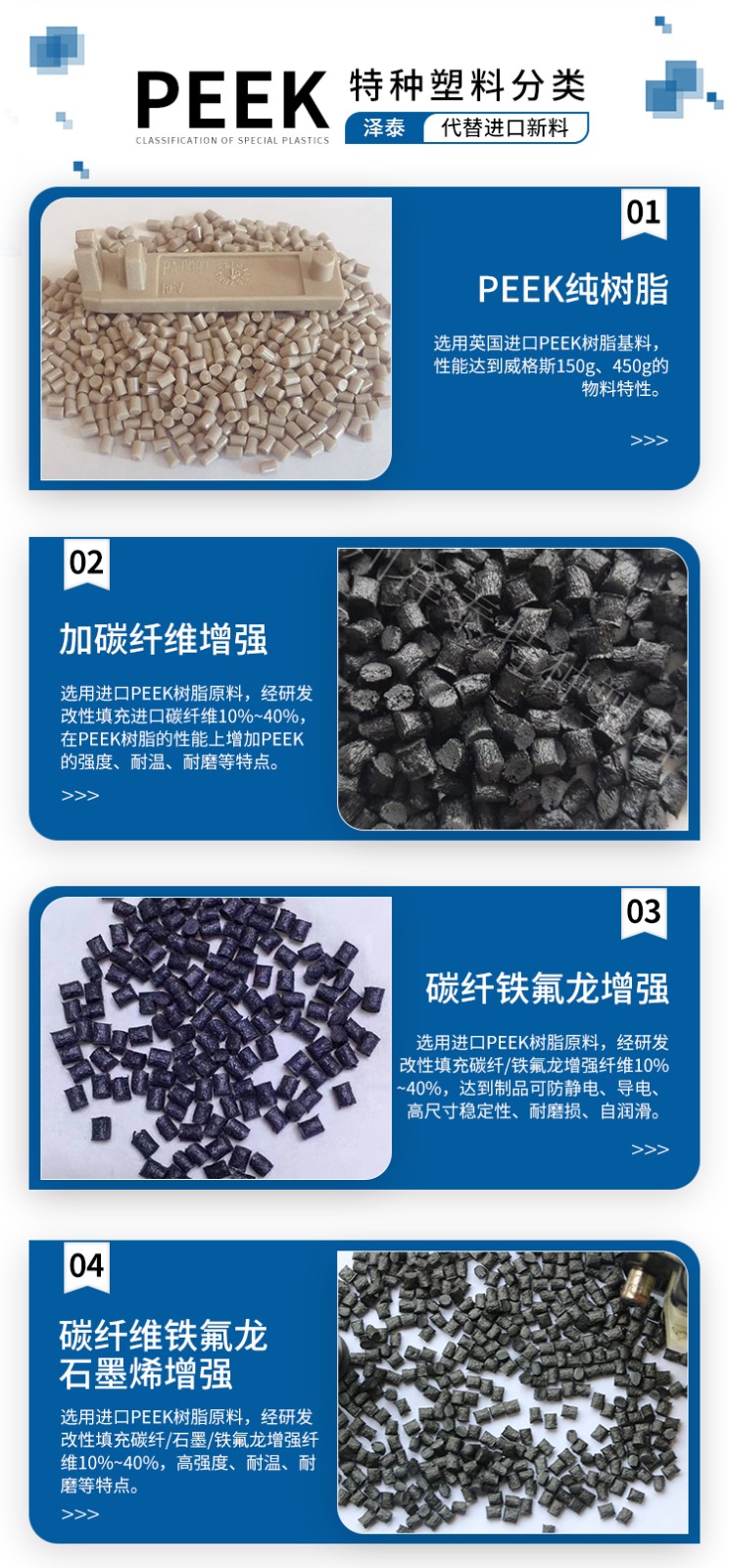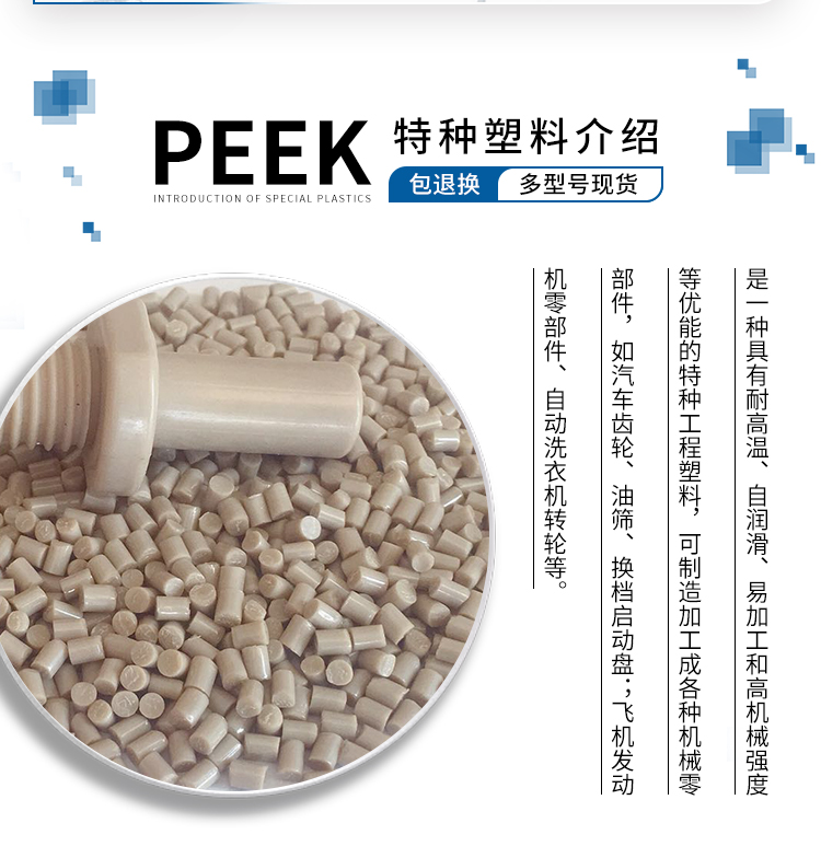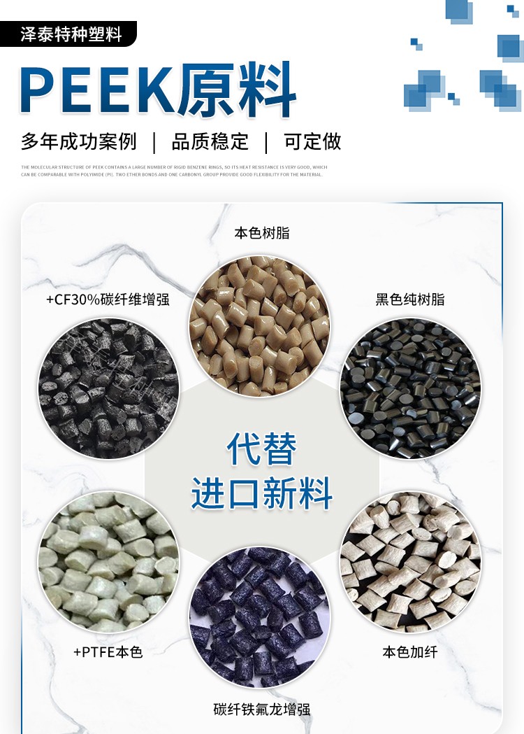我司自產(chǎn)耐高溫300度無油耐磨損自潤滑的PEEK塑料原料顆粒,具有高強(qiáng)度,高剛性,高尺寸穩(wěn)定性,耐腐蝕酸堿,耐化學(xué),無油狀態(tài)下耐磨自潤滑的特點(diǎn),產(chǎn)品是由進(jìn)口威格斯PEEK純底料改性生產(chǎn),大大降低生產(chǎn)成本跟供貨周期,目前已成功用于注塑耐磨損自潤滑PEEK軸套,耐磨損自潤滑PEEK齒輪,耐磨損PEEK滑塊等高性能汽車部件,機(jī)械部件,航天機(jī)械部件。