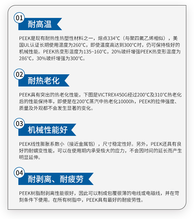 耐高溫300度無油耐磨損自潤滑的PEEK塑料原料顆粒產(chǎn)品基礎(chǔ)性能: